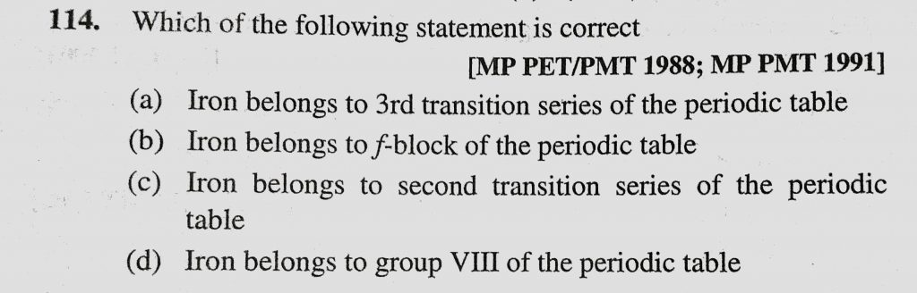 Which of the following statement is correct (a) Iron belongs to 3rd transition series of the periodic table (b) Iron belongs to f-block of the periodic table Which of the following statement is correct (a) Iron belongs to 3rd transition series of the periodic table (b) Iron belongs to f-block of the periodic table November 30, 2020 Category: Uncategorised (JEE Advanced Physics by BM Sharma + GMP Solutions) , Facebook Messenger WhatsApp Share this:TwitterFacebook Related