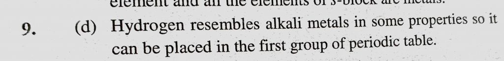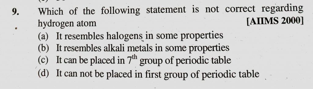 Which of the following statement is not correct regarding hydrogen atom (a) It resembles halogens in some properties (b) It resembles alkali metals in some properties Which of the following statement is not correct regarding hydrogen atom (a) It resembles halogens in some properties (b) It resembles alkali metals in some properties November 8, 2020 Category: Uncategorised (JEE Advanced Physics by BM Sharma + GMP Solutions) , Facebook Messenger WhatsApp Share this:TwitterFacebook Related