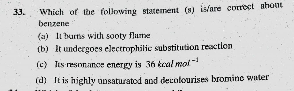 Which of the following statement (s) is / are correct about benzene (a) It burns with sooty flame (b) It undergoes electrophilic substitution reaction Which of the following statement (s) is / are correct about benzene (a) It burns with sooty flame (b) It undergoes electrophilic substitution reaction December 16, 2020 Category: Uncategorised (JEE Advanced Physics by BM Sharma + GMP Solutions) , Facebook Messenger WhatsApp Share this:TwitterFacebook Related