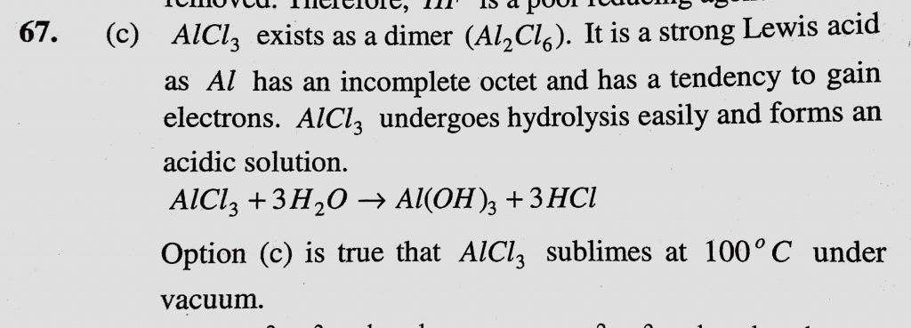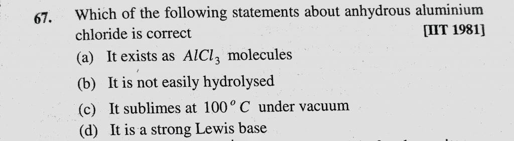Which of the following statements about anhydrous aluminium chloride is correct (a) It exists as AlCl3 molecules Which of the following statements about anhydrous aluminium chloride is correct (a) It exists as AlCl3 molecules November 27, 2020 Category: Uncategorised (JEE Advanced Physics by BM Sharma + GMP Solutions) , Facebook Messenger WhatsApp Share this:TwitterFacebook Related