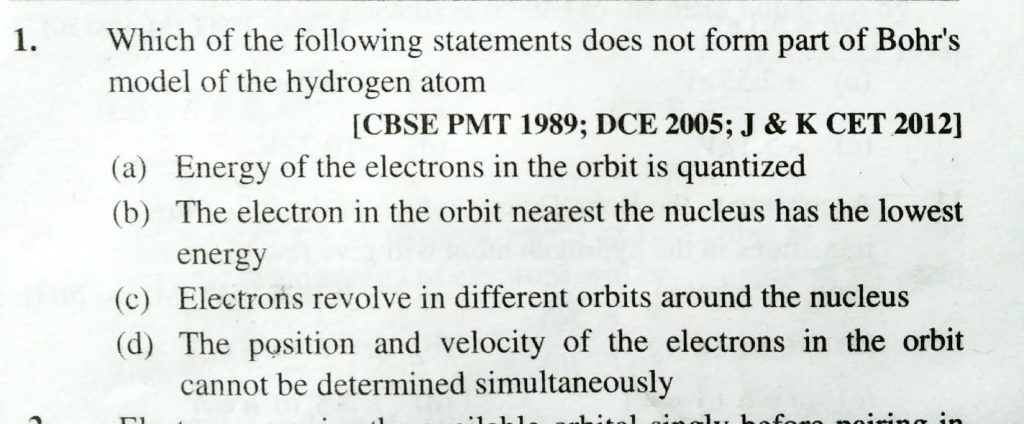 Which of the following statements does not form part of Bohr’s model of the hydrogen atom Which of the following statements does not form part of Bohr's model of the hydrogen atom November 26, 2020 Category: Uncategorised (JEE Advanced Physics by BM Sharma + GMP Solutions) , Facebook Messenger WhatsApp Share this:TwitterFacebook Related