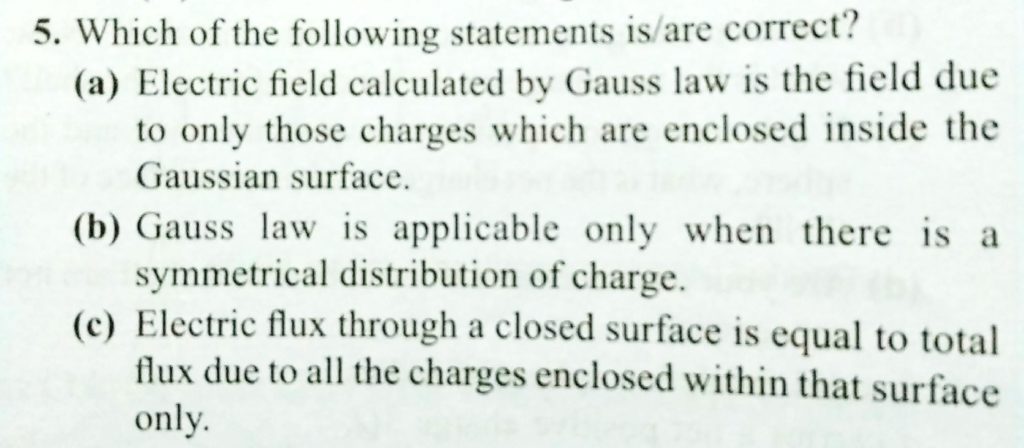 Which of the following statements is /are correct ? (a) Electric field calculated byy Gauss law is the field due to only those charges which are enclosed inside the Gaussian surface . Which of the following statements is /are correct ? (a) Electric field calculated byy Gauss law is the field due to only those charges which are enclosed inside the Gaussian surface . October 31, 2020 Category: Uncategorised (JEE Advanced Physics by BM Sharma + GMP Solutions) , Facebook Messenger WhatsApp Share this:TwitterFacebook Related