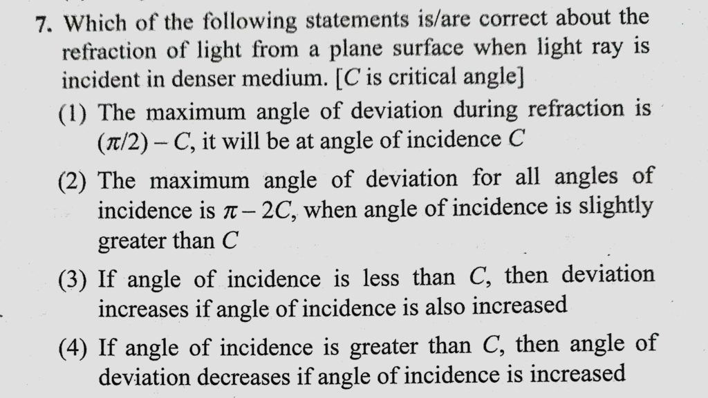 Which of the following statements is/are correct about the refraction of light from a plane surface when light ray is incident in denser medium. Which of the following statements is/are correct about the refraction of light from a plane surface when light ray is incident in denser medium. October 6, 2020 Category: Uncategorised (JEE Advanced Physics by BM Sharma + GMP Solutions) , Facebook Messenger WhatsApp Share this:TwitterFacebook Related