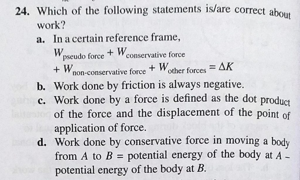 Which of the following statements is/are correct about work? a. In a certain reference frame, Which of the following statements is/are correct about work? a. In a certain reference frame October 4, 2020 Category: Uncategorised (JEE Advanced Physics by BM Sharma + GMP Solutions) , Facebook Messenger WhatsApp Share this:TwitterFacebook Related
