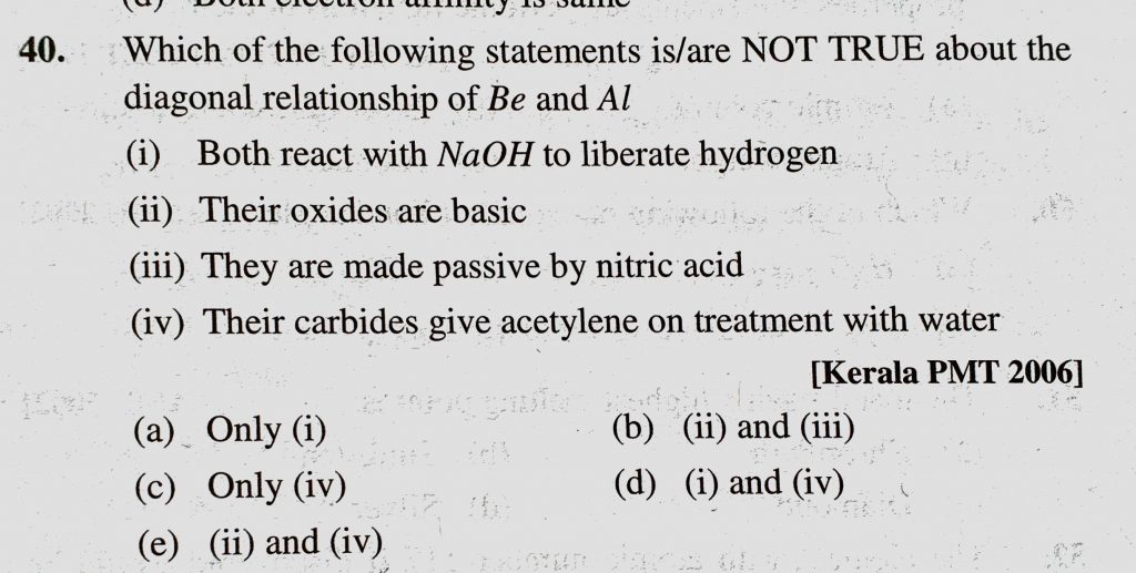 Which of the following statements is/are NOT TRUE about the diagonal relationship of Be and Al Which of the following statements is/are NOT TRUE about the diagonal relationship of Be and Al November 8, 2020 Category: Uncategorised (JEE Advanced Physics by BM Sharma + GMP Solutions) , Facebook Messenger WhatsApp Share this:TwitterFacebook Related