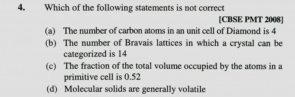 Which of the following statements is not correct (a) The number of carbon atoms in an unit cell of Diamond is 4 Which of the following statements is not correct (a) The number of carbon atoms in an unit cell of Diamond is 4 December 16, 2020 Category: Uncategorised (JEE Advanced Physics by BM Sharma + GMP Solutions) , Facebook Messenger WhatsApp Share this:TwitterFacebook Related