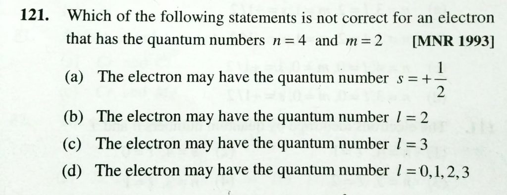 Which of the following statements is not correct for an electron that has the quantum numbers n = 4 and m = 2 Which of the following statements is not correct for an electron that has the quantum numbers n = 4 and m = 2 November 29, 2020 Category: Uncategorised (JEE Advanced Physics by BM Sharma + GMP Solutions) , Facebook Messenger WhatsApp Share this:TwitterFacebook Related