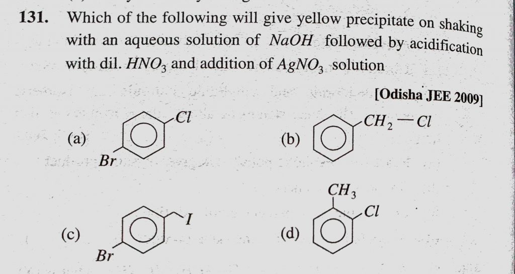 Which of the following will give yellow precipitate on shaking with an aqueous solution of NaOH followed by acidification with dil. HNO3 and addition of AgNO3 solution Which of the following will give yellow precipitate on shaking with an aqueous solution of NaOH followed by acidification with dil. HNO3 and addition of AgNO3 solution February 8, 2021 Category: Uncategorised (JEE Advanced Physics by BM Sharma + GMP Solutions) , Facebook Messenger WhatsApp Share this:TwitterFacebook Related