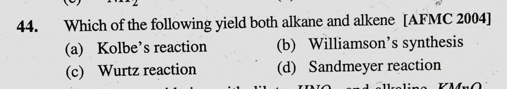 Which of the following yield both alkane and alkene (a) Kolbe’s reaction (b) Williamson’s synthesis (c) Wurtz reaction (d) Sandmeyer reaction Which of the following yield both alkane and alkene (a) Kolbe's reaction (b) Williamson's synthesis (c) Wurtz reaction (d) Sandmeyer reaction December 15, 2020 Category: Uncategorised (JEE Advanced Physics by BM Sharma + GMP Solutions) , Facebook Messenger WhatsApp Share this:TwitterFacebook Related