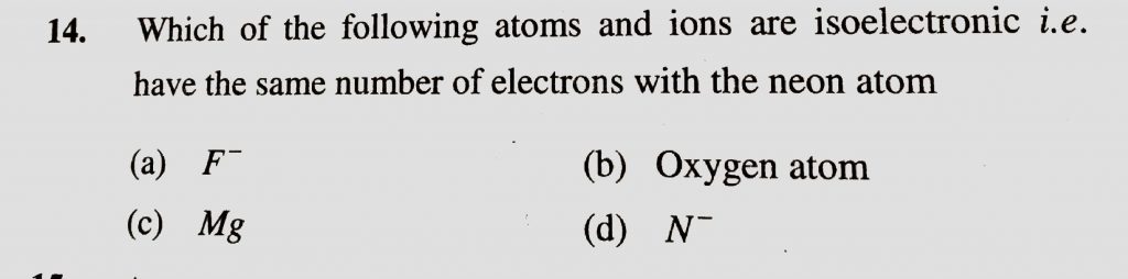 Which of the follwing atoms and ions are isoelectronic i.e. have the same number of electrons with the neon atom Which of the follwing atoms and ions are isoelectronic i.e. have the same number of electrons with the neon atom November 29, 2020 Category: Uncategorised (JEE Advanced Physics by BM Sharma + GMP Solutions) , Facebook Messenger WhatsApp Share this:TwitterFacebook Related