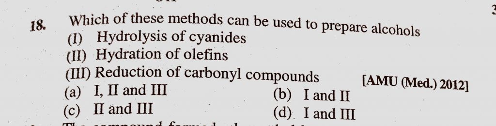 Which of these methods can be used to prepare alcohols (I) Hydrolysis of cyanides (II) Hydration of olefins (III) Reduction of carbonyl compounds Which of these methods can be used to prepare alcohols (I) Hydrolysis of cyanides (II) Hydration of olefins (III) Reduction of carbonyl compounds February 10, 2021 Category: Uncategorised (JEE Advanced Physics by BM Sharma + GMP Solutions) , Facebook Messenger WhatsApp Share this:TwitterFacebook Related