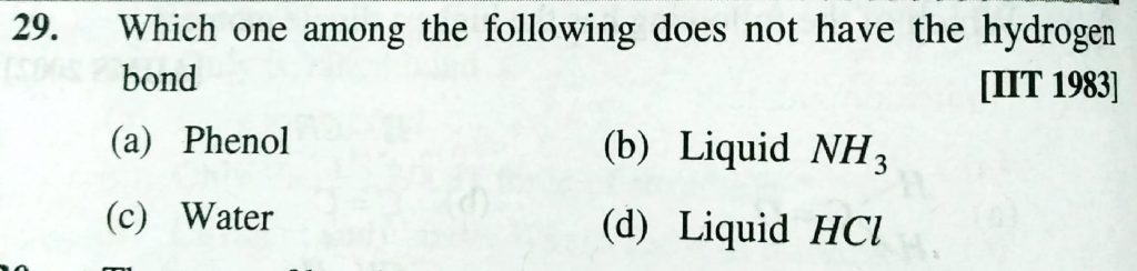 Which one among the following does not have the hydrogen bond (a) Phenol (b) Liquid NH3 (c) water (d) Liquid HCl Which one among the following does not have the hydrogen bond (a) Phenol (b) Liquid NH3 (c) water (d) Liquid HCl December 9, 2020 Category: Uncategorised (JEE Advanced Physics by BM Sharma + GMP Solutions) , Facebook Messenger WhatsApp Share this:TwitterFacebook Related