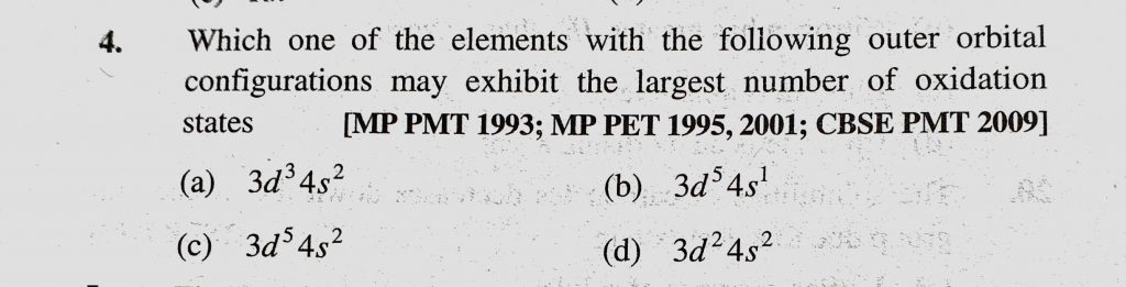 Which one of the elements with the following outer orbital configurations may exhibit the largest number of oxidation states Which one of the elements with the following outer orbital configurations may exhibit the largest number of oxidation states November 10, 2020 Category: Uncategorised (JEE Advanced Physics by BM Sharma + GMP Solutions) , Facebook Messenger WhatsApp Share this:TwitterFacebook Related