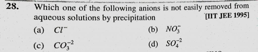 Which one of the following anions is not easily removed from aqueous solutions by precipitation Which one of the following anions is not easily removed from aqueous solutions by precipitation December 7, 2020 Category: Uncategorised (JEE Advanced Physics by BM Sharma + GMP Solutions) , Facebook Messenger WhatsApp Share this:TwitterFacebook Related