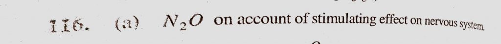 Which one of the following can be used as an anaesthetic (a) N2O (b) NO (c) NCl3 (d) NO2 Which one of the following can be used as an anaesthetic (a) N2O (b) NO (c) NCl3 (d) NO2 November 22, 2020 Category: Uncategorised (JEE Advanced Physics by BM Sharma + GMP Solutions) , Facebook Messenger WhatsApp Share this:TwitterFacebook Related