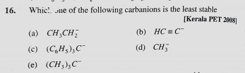 Which one of the following carbanions is the least stable (a) CH3CH2- (b) HC =- C- Which one of the following carbanions is the least stable (a) CH3CH2- (b) HC =- C- December 9, 2020 Category: Uncategorised (JEE Advanced Physics by BM Sharma + GMP Solutions) , Facebook Messenger WhatsApp Share this:TwitterFacebook Related