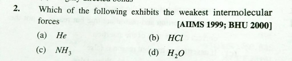 Which of the following exhibits the weakest intermolecular forces Which of the following exhibits the weakest intermolecular forces December 9, 2020 Category: Uncategorised (JEE Advanced Physics by BM Sharma + GMP Solutions) , Facebook Messenger WhatsApp Share this:TwitterFacebook Related