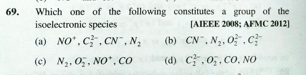 Which one of the following constitues a group of the isoelectronic species Which one of the following constitues a group of the isoelectronic species December 8, 2020 Category: Uncategorised (JEE Advanced Physics by BM Sharma + GMP Solutions) , Facebook Messenger WhatsApp Share this:TwitterFacebook Related