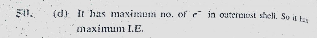 Which one of the following elements has the highest ionisation energy (a) Na (b) Mg (c) C (d) F Which one of the following elements has the highest ionisation energy (a) Na (b) Mg (c) C (d) F November 9, 2020 Category: Uncategorised (JEE Advanced Physics by BM Sharma + GMP Solutions) , Facebook Messenger WhatsApp Share this:TwitterFacebook Related