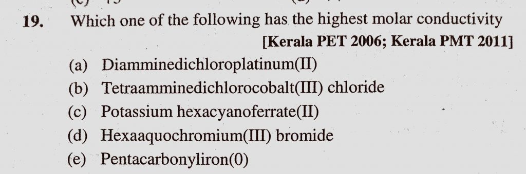 Which one of the following has the highest molar conductivity (a) Diamminedichloroplatinum (II) (b) Tetraaminedichlorocobalt(III) chloride Which one of the following has the highest molar conductivity (a) Diamminedichloroplatinum (II) (b) Tetraaminedichlorocobalt(III) chloride December 3, 2020 Category: Uncategorised (JEE Advanced Physics by BM Sharma + GMP Solutions) , Facebook Messenger WhatsApp Share this:TwitterFacebook Related