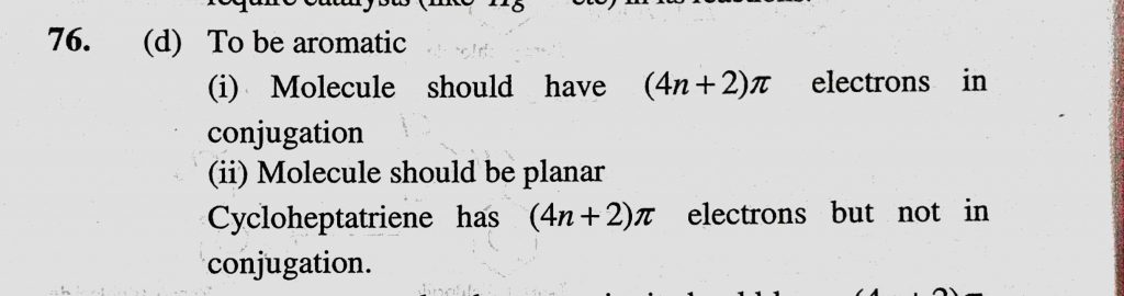 Which one of the following is aromatic (a) Cyclopentadienyl cation (b) Cyclooctatetraene (c) Cycloheptatriene (d) Cycloheptatrienyl cation Which one of the following is aromatic (a) Cyclopentadienyl cation (b) Cyclooctatetraene (c) Cycloheptatriene (d) Cycloheptatrienyl cation December 15, 2020 Category: Uncategorised (JEE Advanced Physics by BM Sharma + GMP Solutions) , Facebook Messenger WhatsApp Share this:TwitterFacebook Related