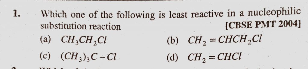 Which one of the following is least reactive in a nucleophilic substitution reaction (a) CH3CH2Cl (b) CH2=CHCH2Cl Which one of the following is least reactive in a nucleophilic substitution reaction (a) CH3CH2Cl (b) CH2=CHCH2Cl December 9, 2020 Category: Uncategorised (JEE Advanced Physics by BM Sharma + GMP Solutions) , Facebook Messenger WhatsApp Share this:TwitterFacebook Related
