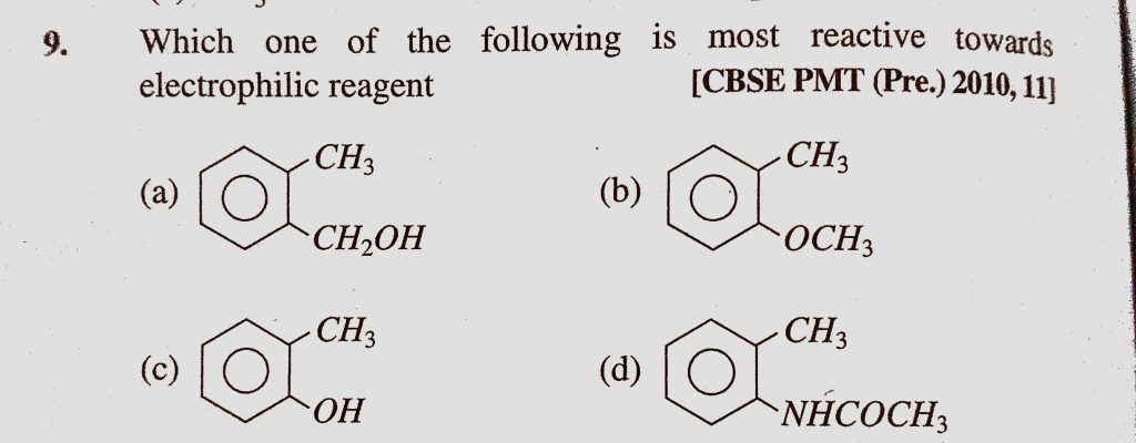Which one of the following is most reactive towards electophilic reagent Which one of the following is most reactive towards electophilic reagent December 9, 2020 Category: Uncategorised (JEE Advanced Physics by BM Sharma + GMP Solutions) , Facebook Messenger WhatsApp Share this:TwitterFacebook Related