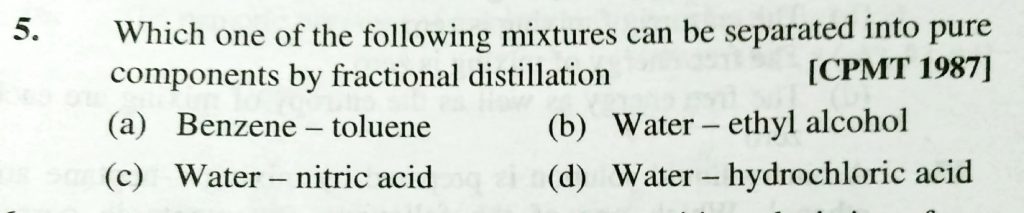 Which one of the following mixtures can be seperated into pure components by fractional distillation Which one of the following mixtures can be seperated into pure components by fractional distillation December 13, 2020 Category: Uncategorised (JEE Advanced Physics by BM Sharma + GMP Solutions) , Facebook Messenger WhatsApp Share this:TwitterFacebook Related