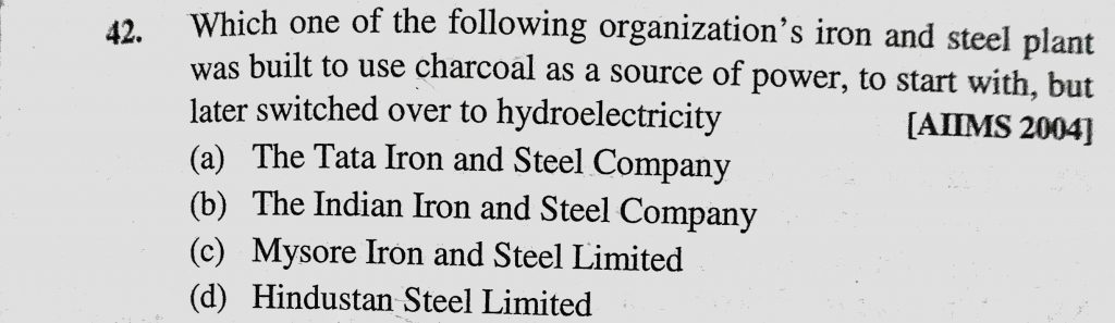 Which one of the following organization’s iron and steel plant was built to use charcoal as a source of power, to start with , but later switched over to hydroelectricity but later switched over to hydroelectricity to start with Which one of the following organization's iron and steel plant was built to use charcoal as a source of power November 29, 2020 Category: Uncategorised (JEE Advanced Physics by BM Sharma + GMP Solutions) , Facebook Messenger WhatsApp Share this:TwitterFacebook Related
