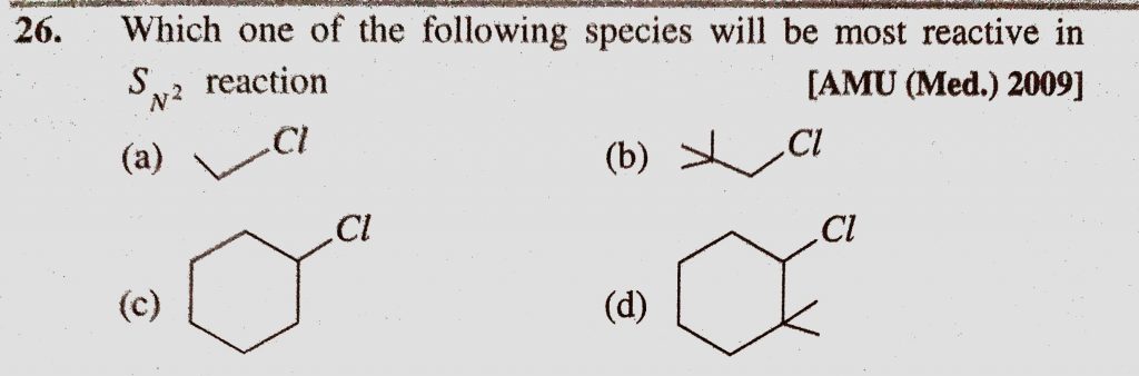Which one of the following species will be most reactive in S N^2 reaction Which one of the following species will be most reactive in S N^2 reaction December 9, 2020 Category: Uncategorised (JEE Advanced Physics by BM Sharma + GMP Solutions) , Facebook Messenger WhatsApp Share this:TwitterFacebook Related