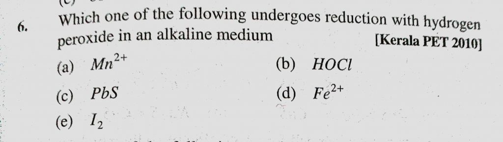 Which one of the following undergoes reduction with hydrogen peroxide in an alkaline medium (a) Mn 2+ (b) HOCl (c) PbS (d) Fe 2+ Which one of the following undergoes reduction with hydrogen peroxide in an alkaline medium (a) Mn 2+ (b) HOCl (c) PbS (d) Fe 2+ November 13, 2020 Category: Uncategorised (JEE Advanced Physics by BM Sharma + GMP Solutions) , Facebook Messenger WhatsApp Share this:TwitterFacebook Related