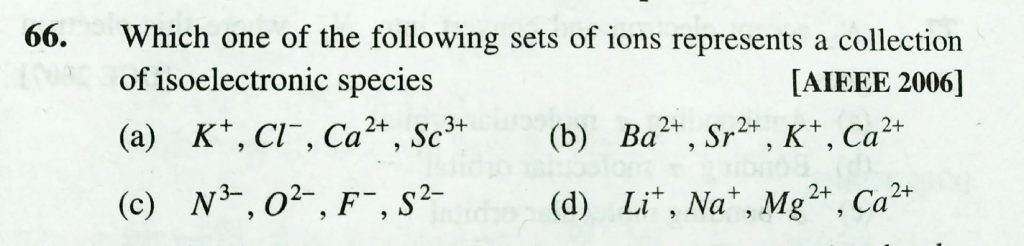 Which one of the follwoing sets of ions represents a collection of isoelectronic species Which one of the follwoing sets of ions represents a collection of isoelectronic species December 8, 2020 Category: Uncategorised (JEE Advanced Physics by BM Sharma + GMP Solutions) , Facebook Messenger WhatsApp Share this:TwitterFacebook Related