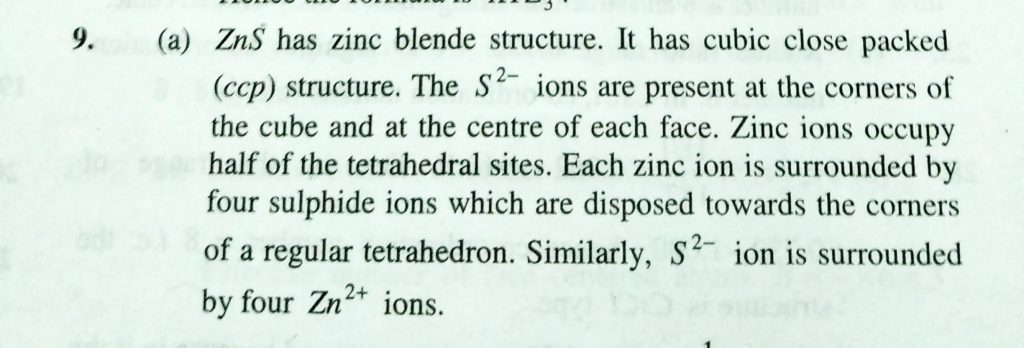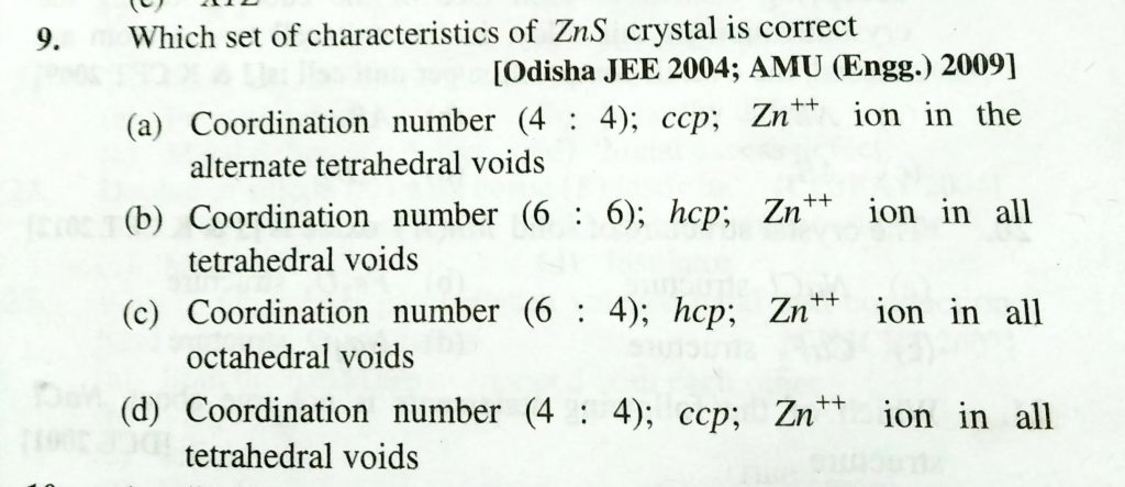 Which set of charcteristics of ZnS crystal is cotrrect (a) Coordination number (4 : 4) ; ccp; Zn ^++ ion in the alternate tetrahedral voids Which set of charcteristics of ZnS crystal is cotrrect (a) Coordination number (4 : 4) ; ccp; Zn ^++ ion in the alternate tetrahedral voids February 9, 2021 Category: Uncategorised (JEE Advanced Physics by BM Sharma + GMP Solutions) , Facebook Messenger WhatsApp Share this:TwitterFacebook Related