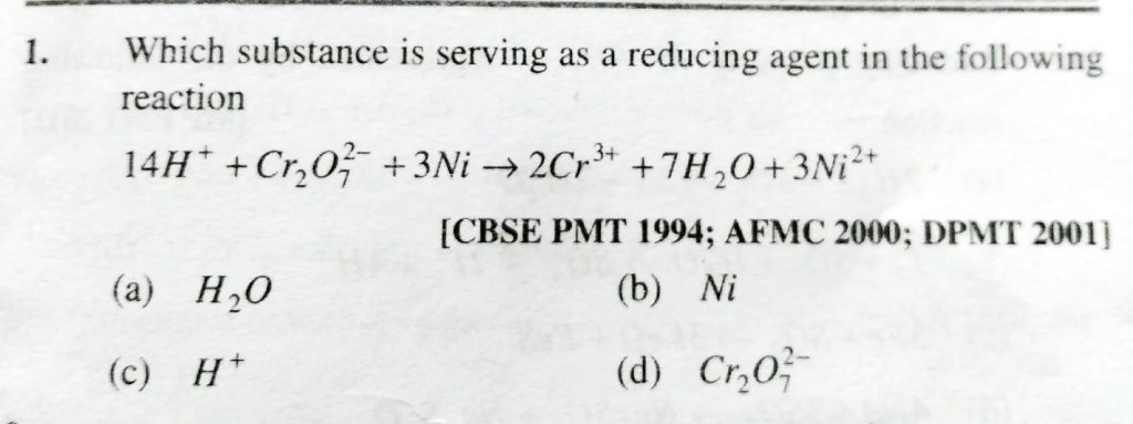 Which substance is serving as a reducing agent in the following reaction 14 H + Cr2O7^2- +3Ni gives 2Cr^3 + 7H2O + 3Ni^2 Which substance is serving as a reducing agent in the following reaction 14 H + Cr2O7^2- +3Ni gives 2Cr^3 + 7H2O + 3Ni^2 November 22, 2020 Category: Uncategorised (JEE Advanced Physics by BM Sharma + GMP Solutions) , Facebook Messenger WhatsApp Share this:TwitterFacebook Related