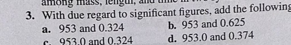 With due regard to significant figures, add the following a. 953 and 0.324 b. 953 add the following a. 953 and 0.324 b. 953 With due regard to significant figures September 14, 2020 Category: Uncategorised (JEE Advanced Physics by BM Sharma + GMP Solutions) , Facebook Messenger WhatsApp Share this:TwitterFacebook Related