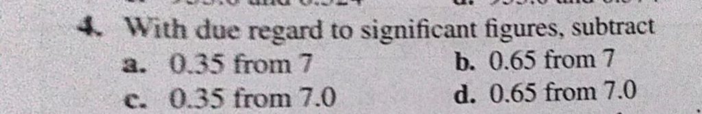 With due regard to significant figures, subtract a. 0.35 from 7 b. 0.65 from 7 subtract a. 0.35 from 7 b. 0.65 from 7 With due regard to significant figures September 14, 2020 Category: Uncategorised (JEE Advanced Physics by BM Sharma + GMP Solutions) , Facebook Messenger WhatsApp Share this:TwitterFacebook Related