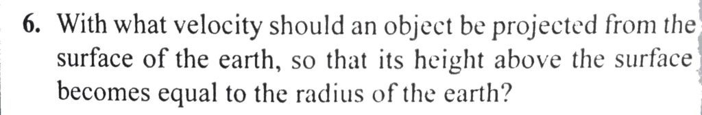 With what velocity should an abject be projectedc from the surface of the earth so that its height above the surface becomes equal to the radius of the earth? With what velocity should an abject be projectedc from the surface of the earth so that its height above the surface becomes equal to the radius of the earth? October 2, 2020 Category: Uncategorised (JEE Advanced Physics by BM Sharma + GMP Solutions) , Facebook Messenger WhatsApp Share this:TwitterFacebook Related