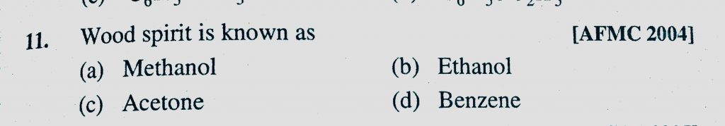 Wood spirit is known as (a) Methanol (b) Ethanol (c) Acetone (d) Benzene Wood spirit is known as (a) Methanol (b) Ethanol (c) Acetone (d) Benzene February 9, 2021 Category: Uncategorised (JEE Advanced Physics by BM Sharma + GMP Solutions) , Facebook Messenger WhatsApp Share this:TwitterFacebook Related