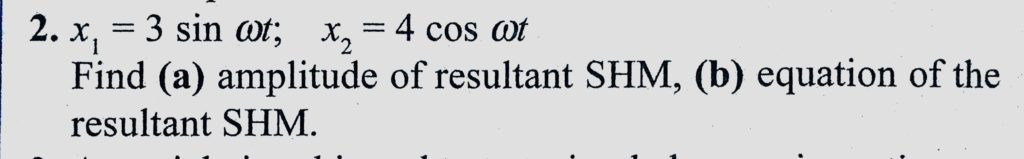 x1 = 3 sin omega t; x2 = 4 cos omega t Find (a) amplitude of resultant SHM, (b) equation of the resultant SHM. (b) equation of the resultant SHM. x1 = 3 sin omega t; x2 = 4 cos omega t Find (a) amplitude of resultant SHM October 30, 2020 Category: Uncategorised (JEE Advanced Physics by BM Sharma + GMP Solutions) , Facebook Messenger WhatsApp Share this:TwitterFacebook Related