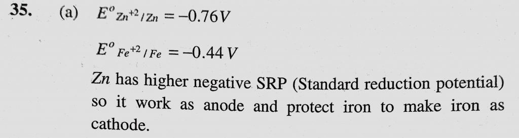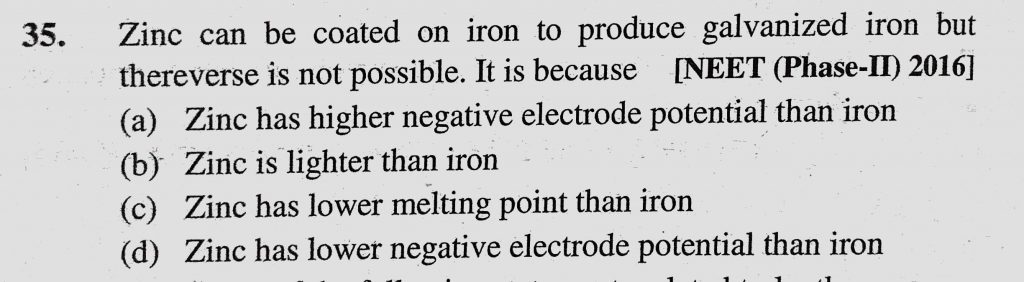 Zinc can be coated on iron to produce galvanized iron but thereverse is not possible. It is because (a) Zinc has higher negative electrode potential than iron Zinc can be coated on iron to produce galvanized iron but thereverse is not possible. It is because (a) Zinc has higher negative electrode potential than iron November 29, 2020 Category: Uncategorised (JEE Advanced Physics by BM Sharma + GMP Solutions) , Facebook Messenger WhatsApp Share this:TwitterFacebook Related